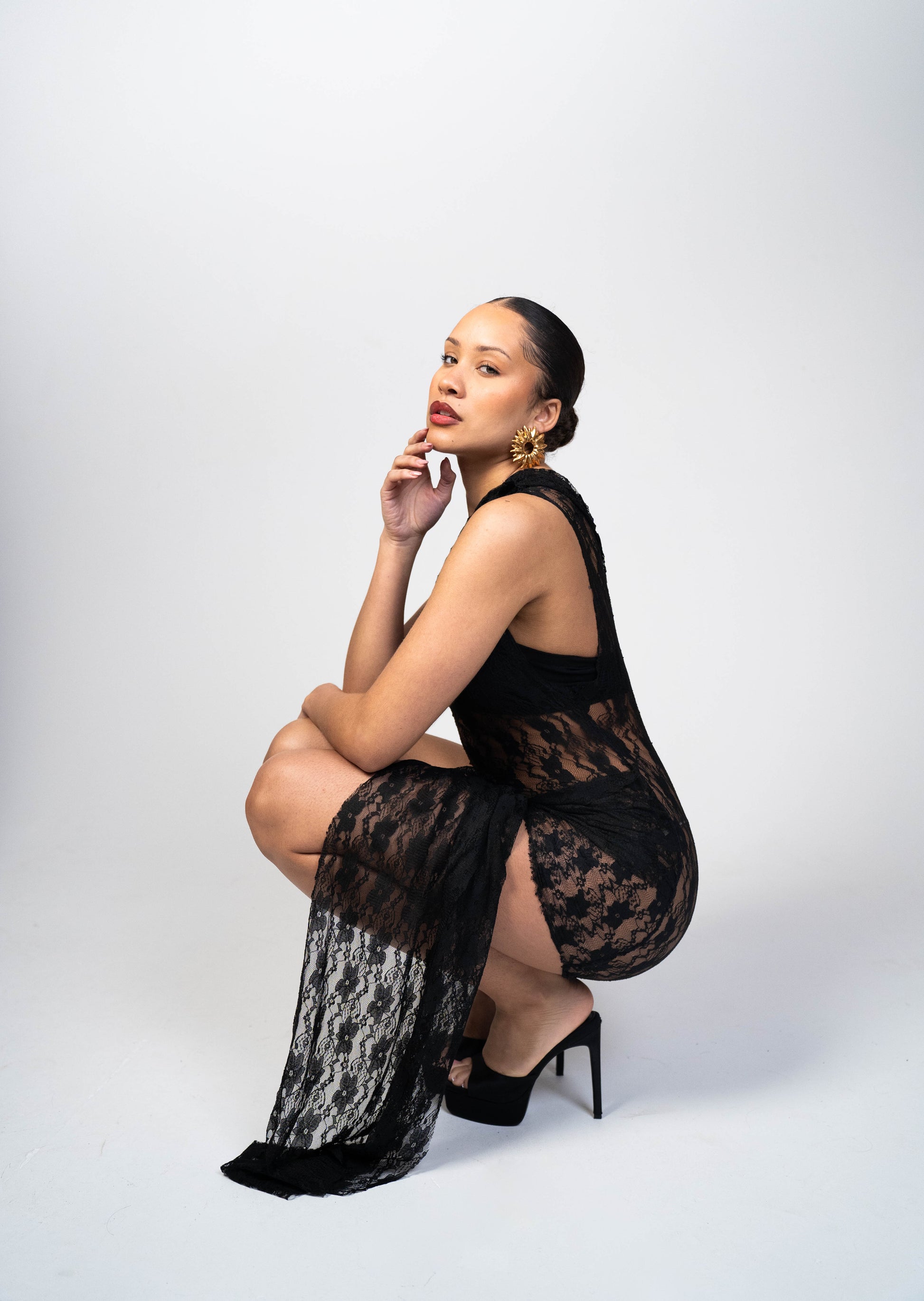 Introducing our KAI dress in Midnight Lace with a stunning tie at the front. This dress is the epitome of elegance and femininity, featuring a flattering A-line silhouette that enhances your curves. The lightweight and breathable stretch lace fabric ensures comfort, making it perfect for any special occasion. Embrace your femininity and make a statement in this stunning dress.