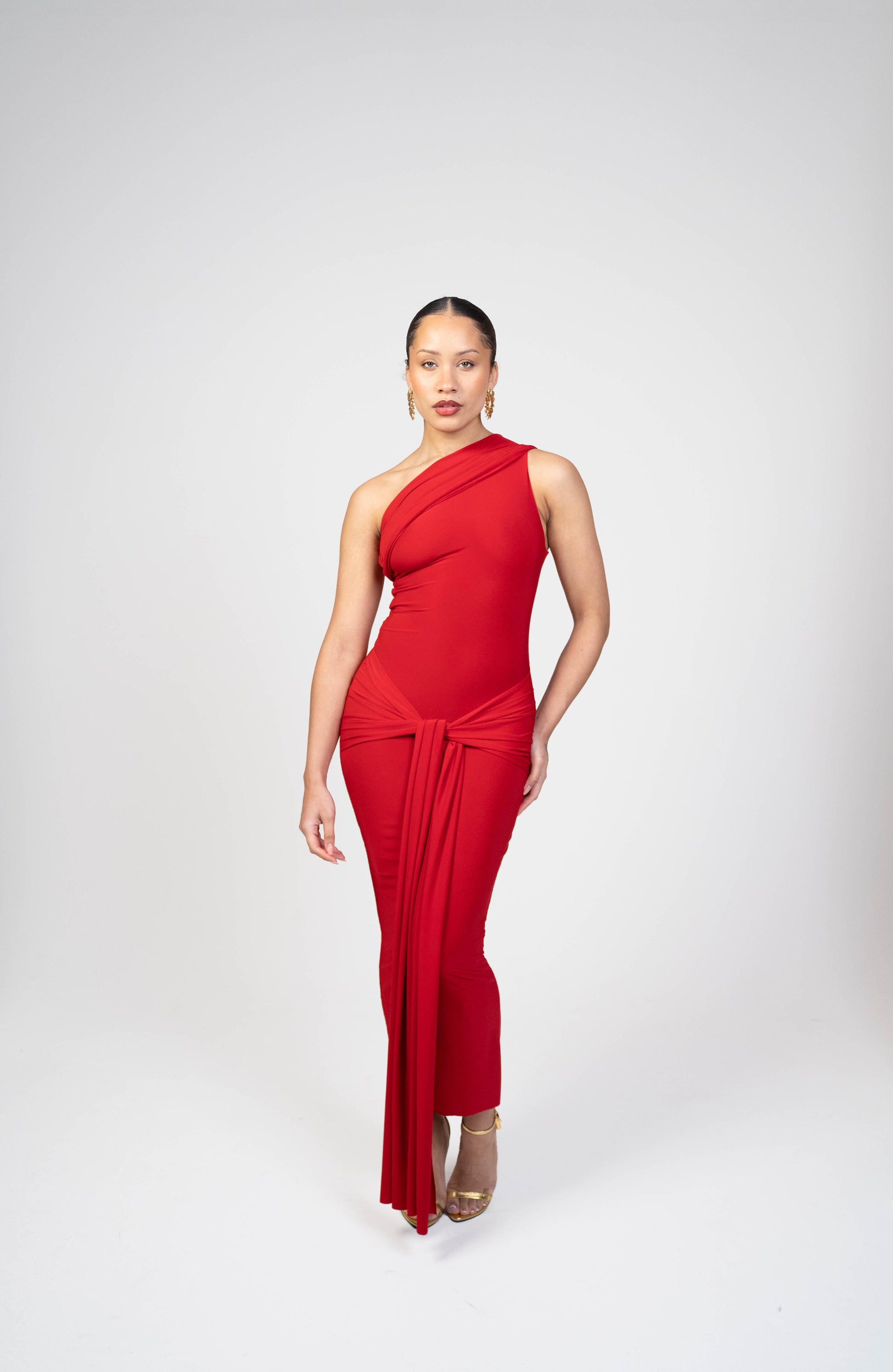 Introducing our KAI MAXI dress in Candy with a stunning tie at the front. This dress is the epitome of elegance and femininity, featuring a flattering A-line silhouette that enhances your curves. The candy apple red adds a touch of romance, while the tie at the front adds a playful and stylish twist. Crafted with attention to detail, the lightweight and breathable fabric ensures comfort, making it perfect for any special occasion. Embrace your femininity and make a statement in this stunning dress.
